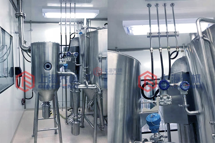 设备主要由:送料系统、加热系统、雾化系统、喷雾干燥系统、惰性气体循环系统、产品回收系统、冷凝系统组成。