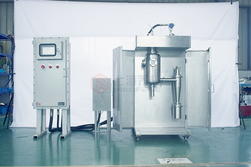 制药实验室科研用小型闭式喷雾干燥机 防爆型188彩票,装置特别针对于有机溶剂,以使用循环氮气而形成的惰性气体介质取代通常的空气介质,来进行喷雾干燥。除了能回收产品之外,尚可回收有机溶剂。针对有机溶剂低闪点或者微毒的特点,易燃易爆的特点特别设计该套闭式循环喷雾系统。