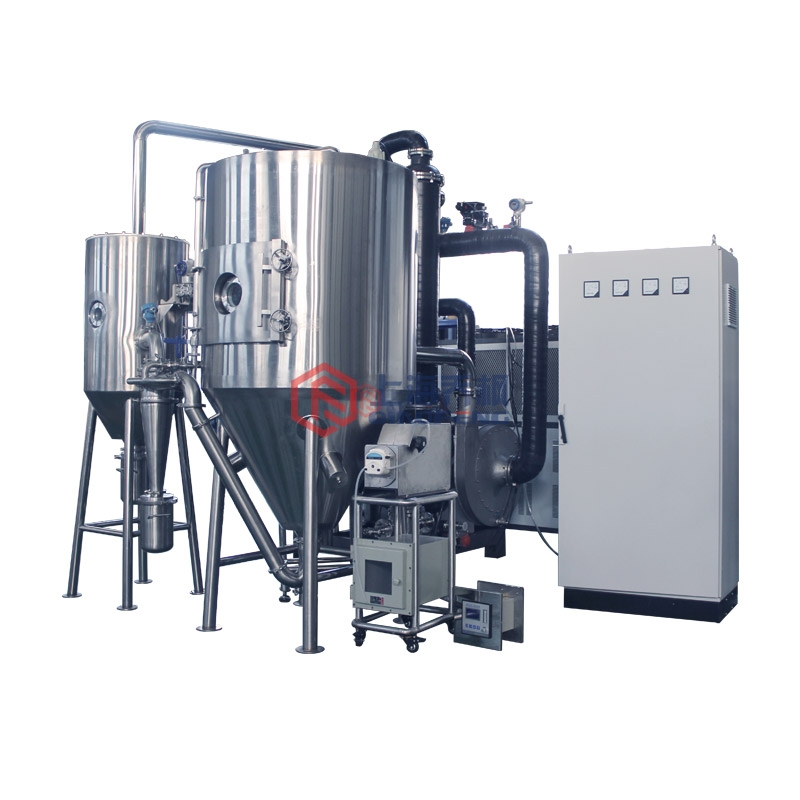 设备主要由:送料系统、加热系统、雾化系统、喷雾干燥系统、惰性气体循环系统、产品回收系统、冷凝系统组成。