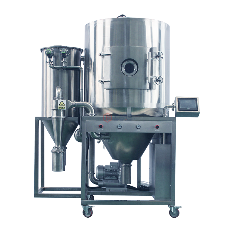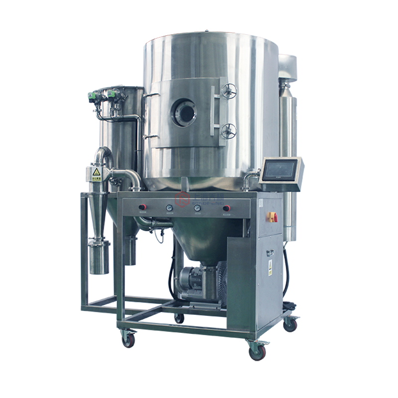 6) 生产过程简化,触摸屏程序控制方便,适宜实验型,连续控制生产型请联系我公司人员定制生产型喷雾干燥机。
