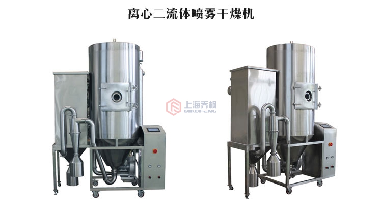 喷雾干燥机是将溶液或悬浮液直接干燥为固体颗粒的干燥设备。可由料液直接获得干燥产品,省去蒸发、结晶、分离及粉碎等单元操作,可连续、自动化生产,操作稳定。采用这种干燥方法,喷雾干燥机中气固两相接触表面积大,干燥时间短,一般干燥时间为5~30s,适宜于干燥热敏性物料。干燥所得产品质量良好,可获得30~50μm的微粒,产品流动性和速溶性好。