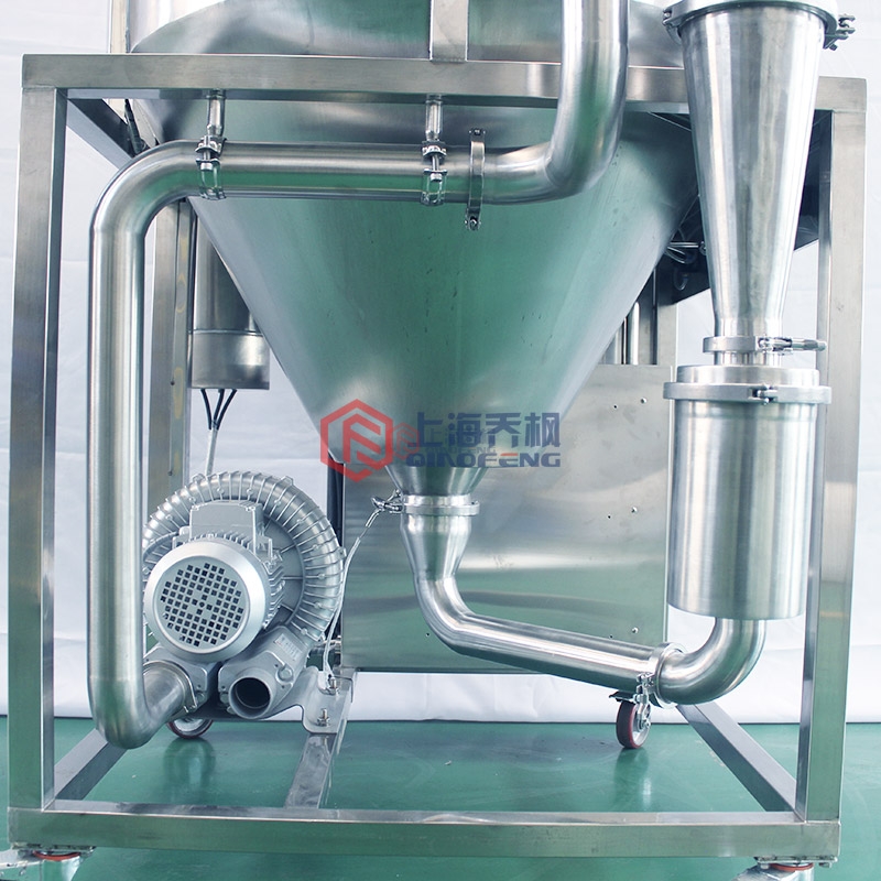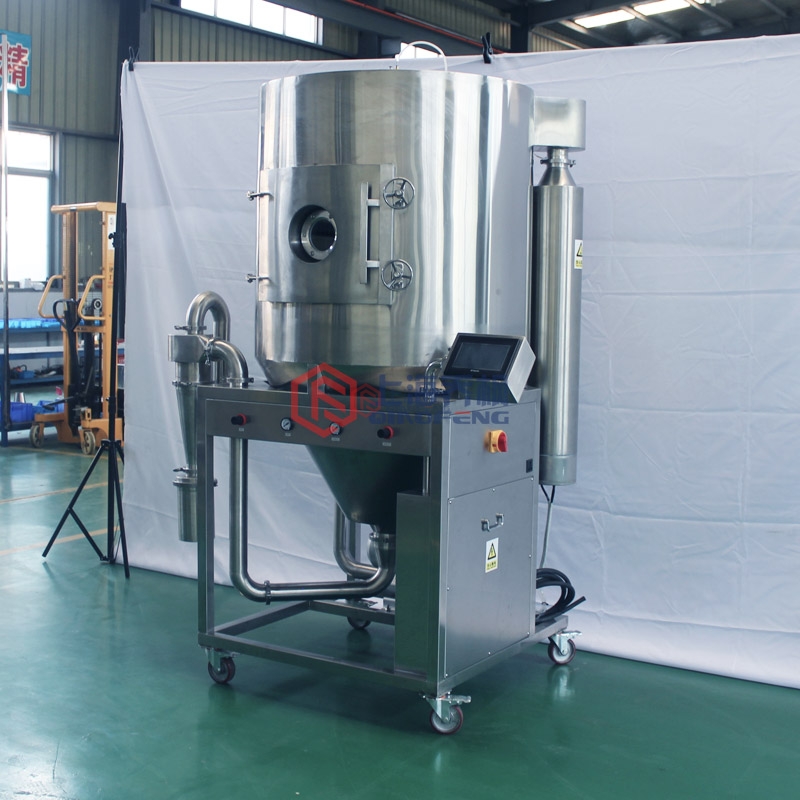 造粒喷雾干燥机是上海乔枫自主研发的一套造粒喷雾干燥机的。QFN-ZL系列造粒喷雾干燥机(乔枫自家)的双气送液造粒喷头,国内一大创新,直接将均匀的球形雾滴通过均匀的热量变成颗粒。